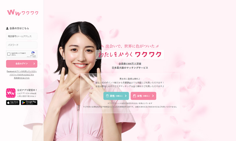 堂々の1位は、業界最大級の会員数を誇る「ワクワクメール」です。